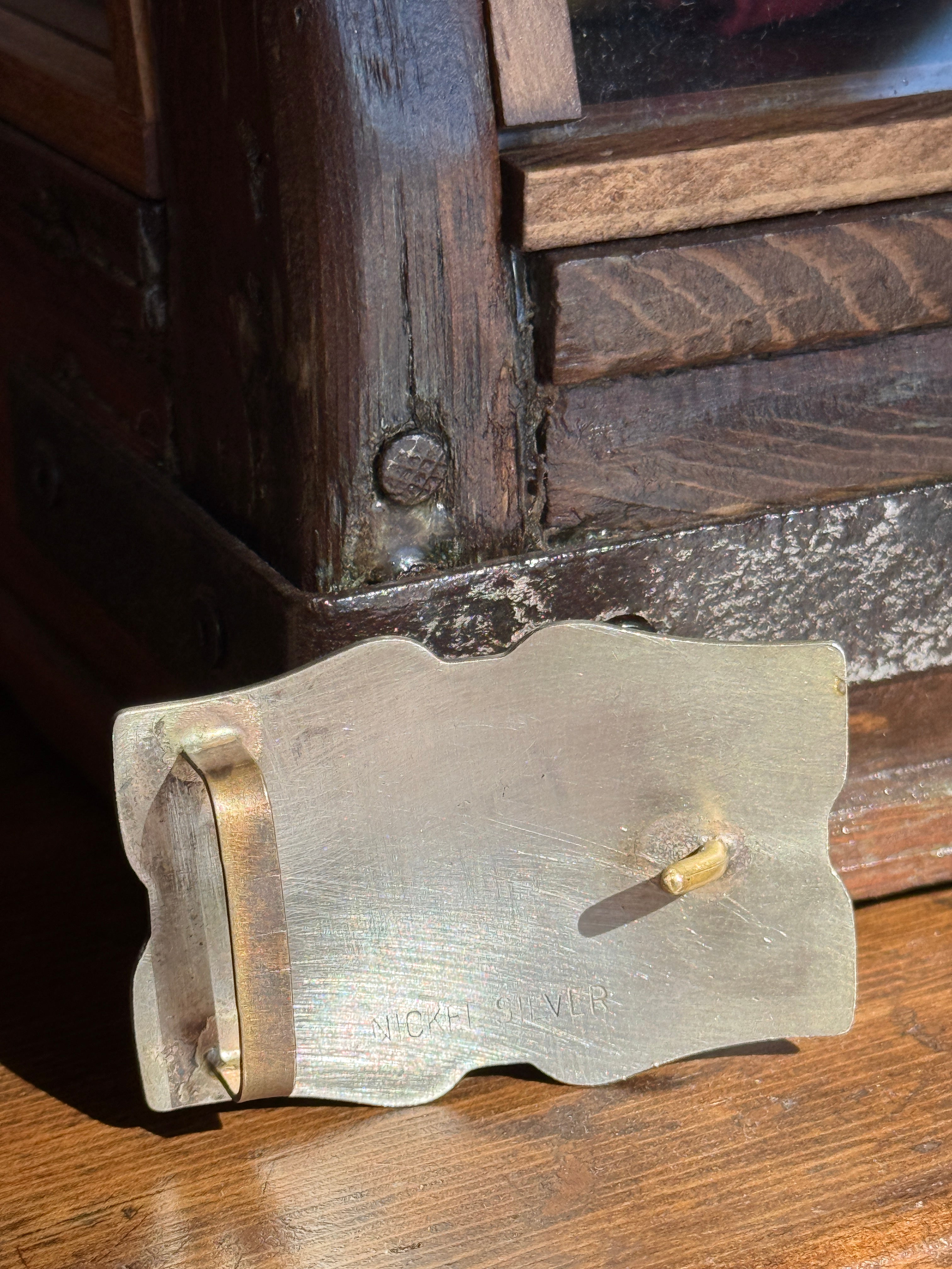 CHIEFFALO americana's rebuilt vintage belt buckles made with copper and brass molds for an elevated western flair. Certain buckles have been rebuilt with a hook and bar on the back.