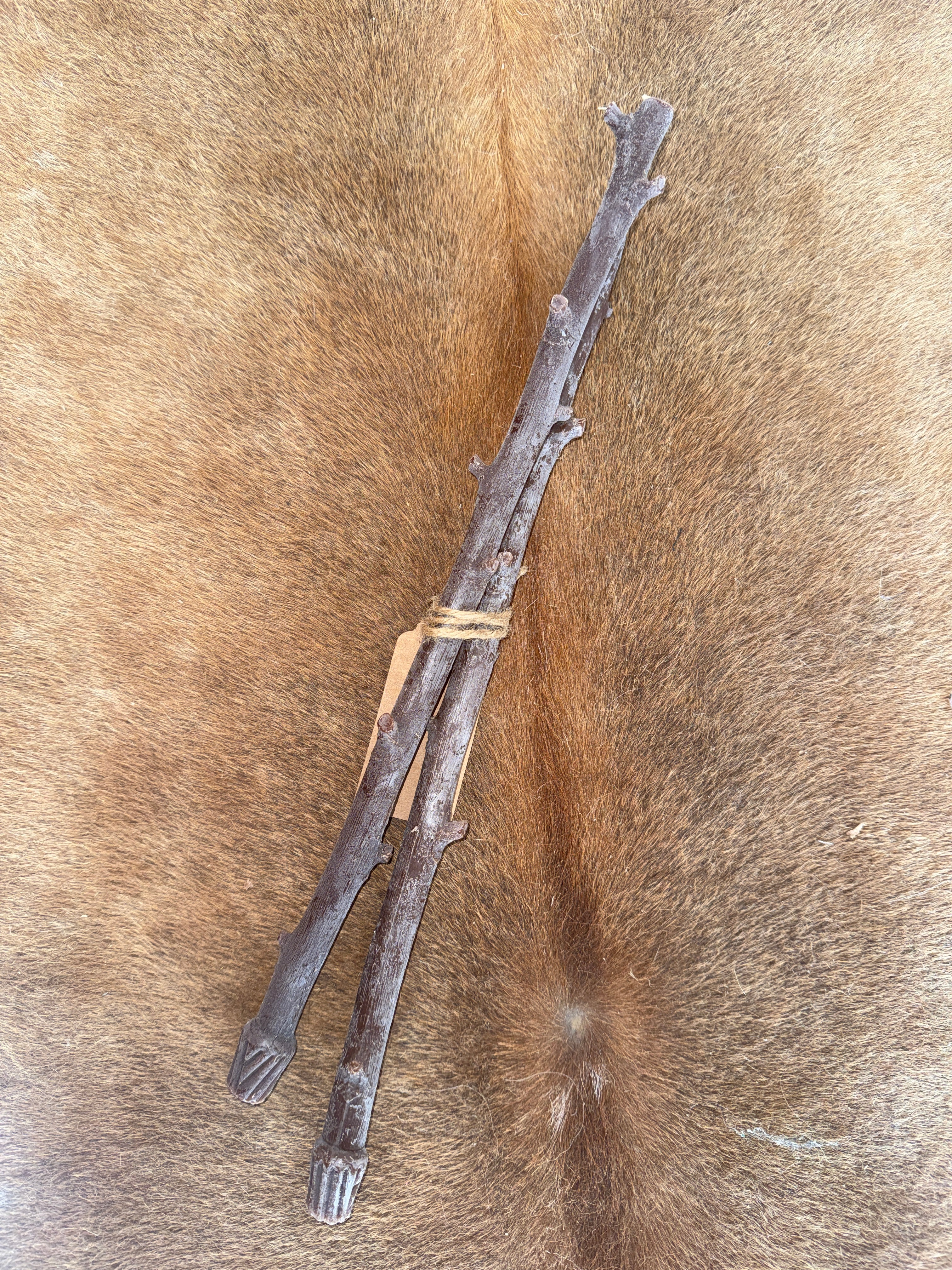 Hickory Stick Candles are sold in pairs and crafted from pure beeswax, designed to resemble natural twigs. Their authentic texture and warm, golden hue bring a rustic charm to any setting, making them perfect for creating an inviting atmosphere. These candles burn cleanly and evenly, offering a subtle, natural fragrance that enhances relaxation. Ideal for both decorative use and ambient lighting, they add a touch of nature-inspired elegance to your home or special events.