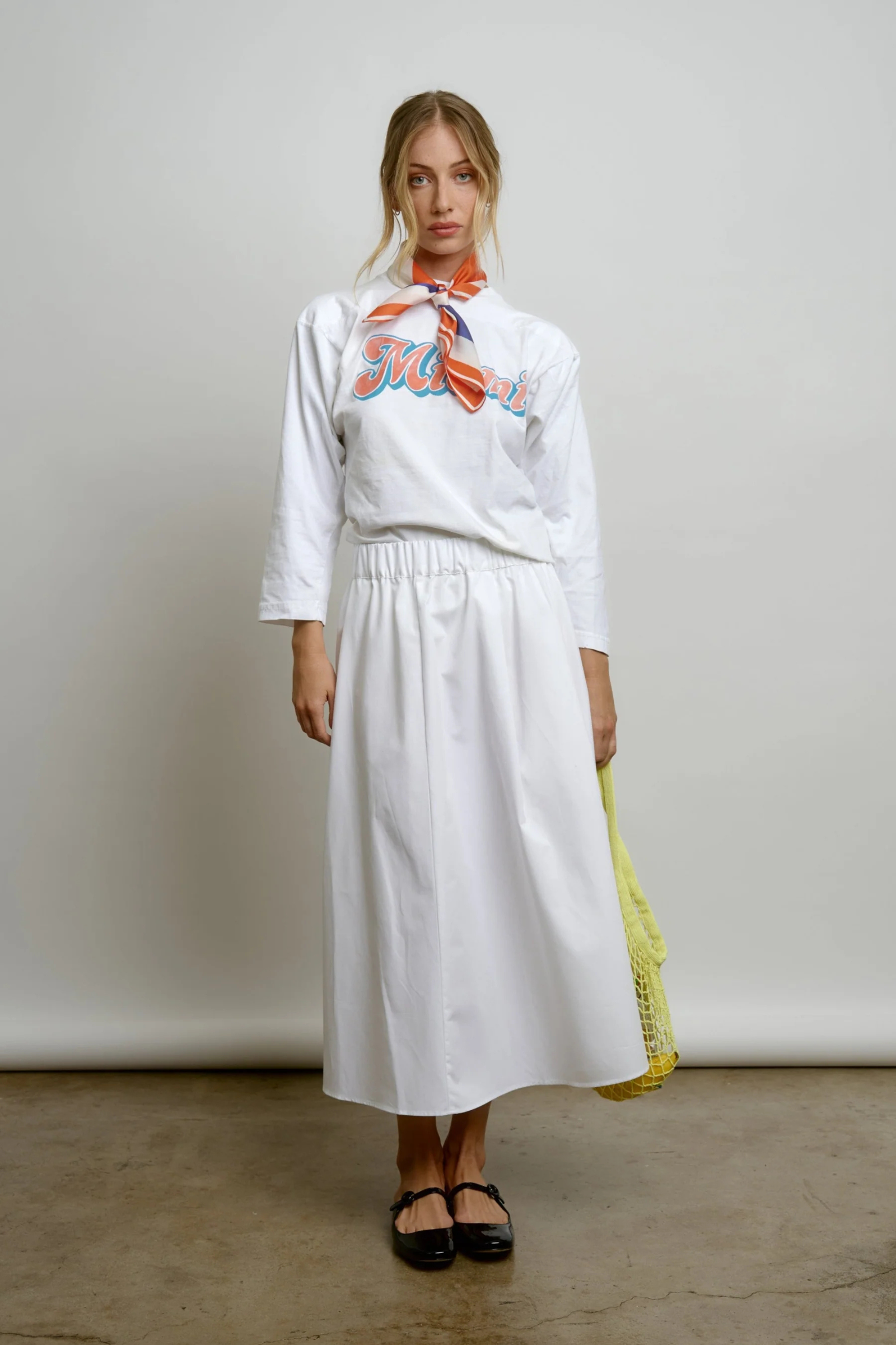 We like it worn with a sweatshirt or a crisp cotton button-down blouse tucked in for double volume. Sneakers to ballet flats to boots will change the mood in minutes.