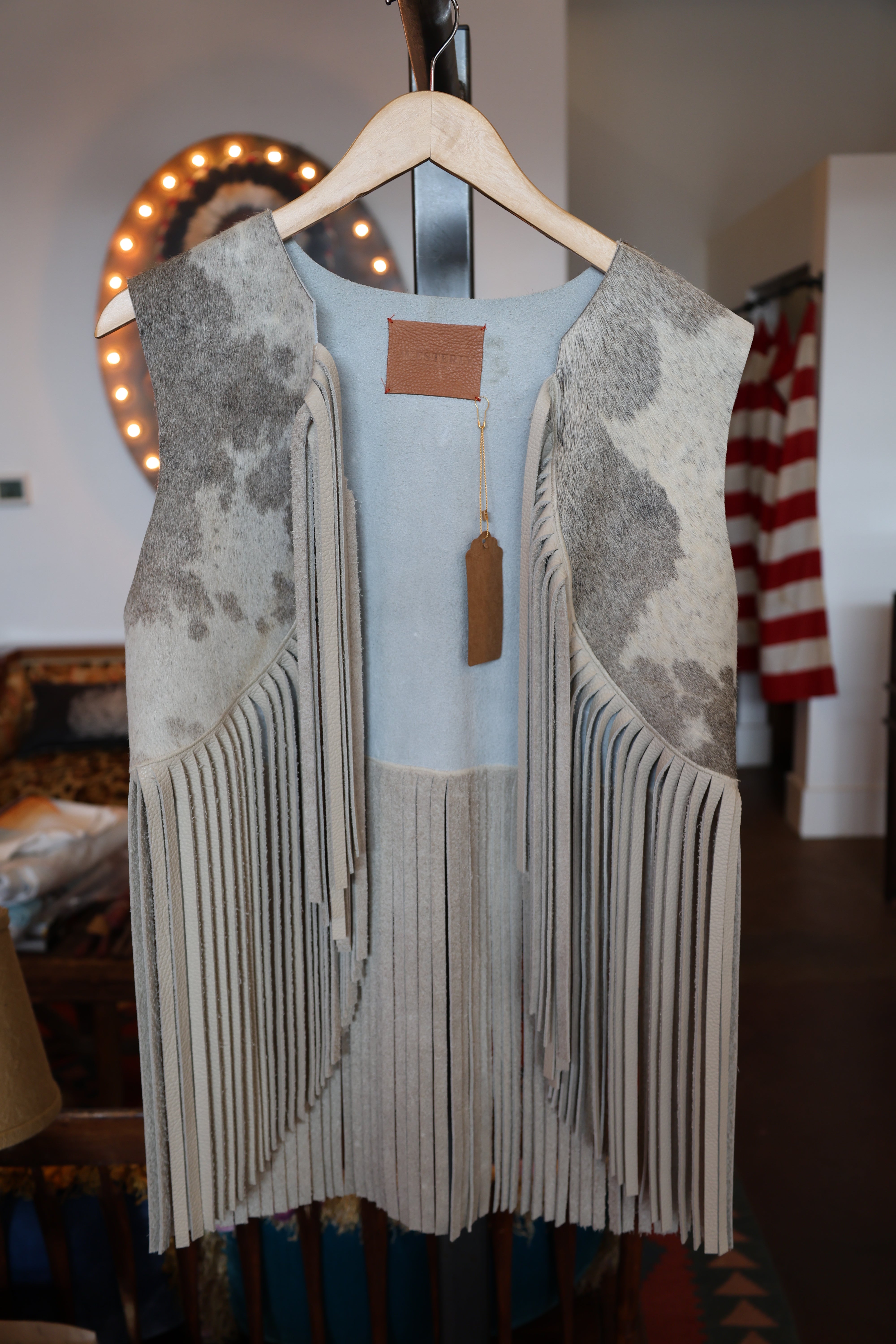 100% Sustainable Cowhide Vest with 14” buckskin fringe